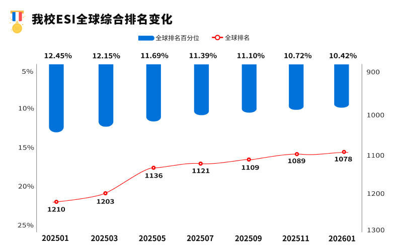 我校ESI全球综合排名趋势图(2026年1月)
