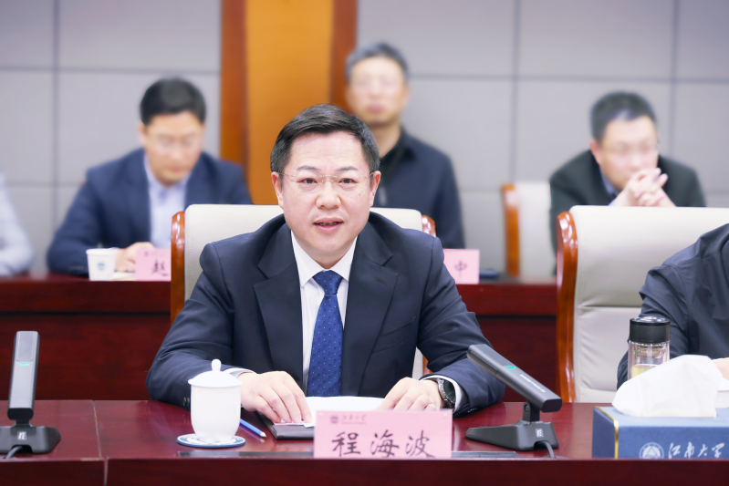 程海波对江南大学长期以来对学校事业发展的支持表示感谢。他指出,两校地缘相近、学科互补,前期已在中药合成生物学领域开展共建合作,具有良好的交叉学科建设基础。当前,医疗模式正从“以治病为中心”向“以全民健康为中心”转变,双方可在药食同源、中药合成生物学、中药发酵炮制、特医食品、日化用品等领域开展深度合作,集聚优势资源,打通学科壁垒,加速培育原创性、先导性重大基础研究成果,推动重大科技成果转化应用,携手培养拔尖创新人才,为两校“双一流”和高水平大学建设注入新动能,为江苏高质量发展和国家重大战略的实施作出新的更大贡献。